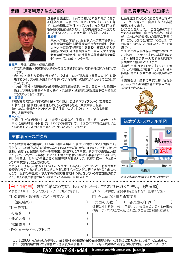 講演会「子どもの自己肯定感と非認知能力を伸ばす子育てと教育」の開催・参加者募集中 〜 2019年10月20日に掲載しました