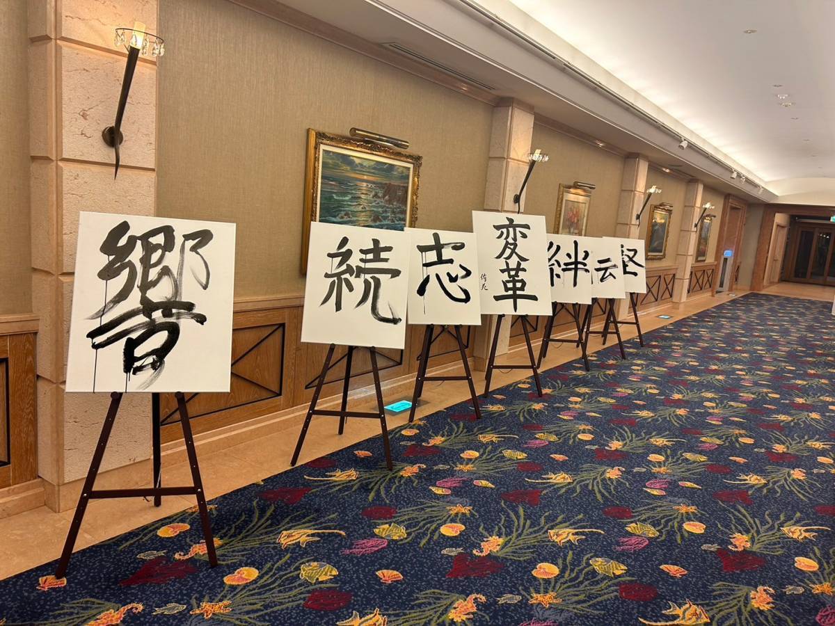 続く賀詞交歓会では議長委員長陣が疾走感のある音楽に合わせて、書道パフォーマンスを行い、それぞれの今年1年間の方針を漢字一字で示しました。