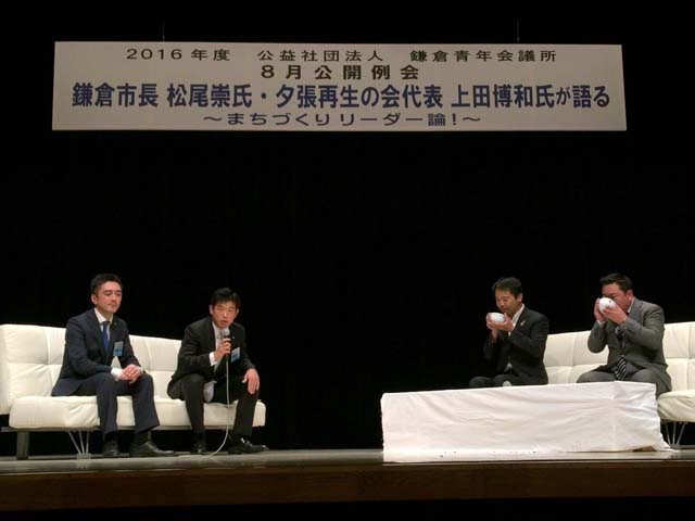 8月例会 「鎌倉市長松尾崇氏・夕張再生の会代表上田博和氏が語る〜まちづくりリーダー論〜」事業報告 〜 2016年8月16日に掲載しました