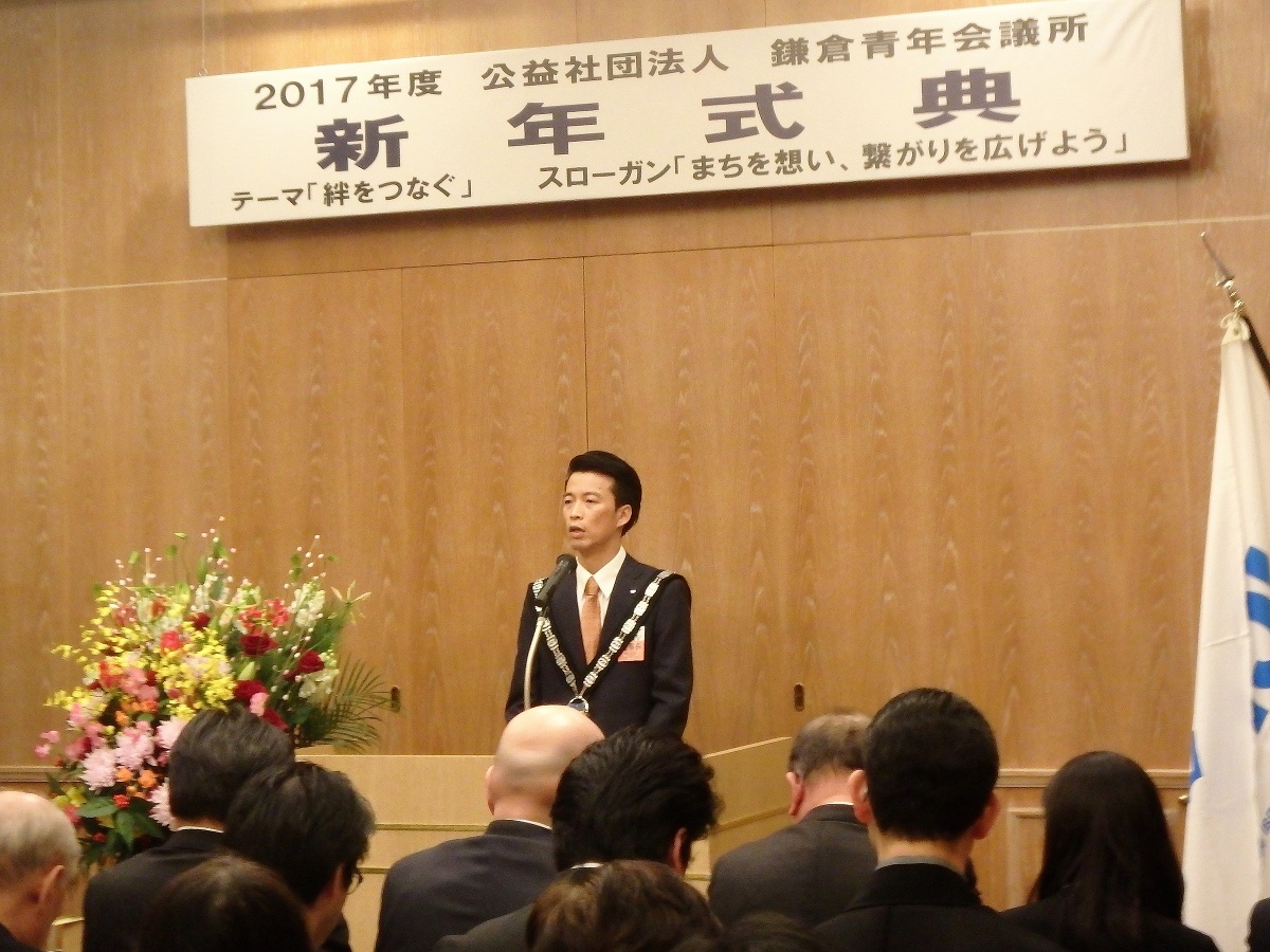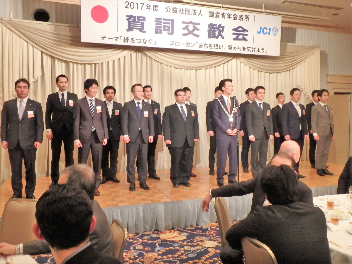 賀詞交歓会では、ご来賓の皆様と共に新年をお祝いいたしました。新年のお忙しい中、 市内、県内各地より、お越しいただきました皆さまにこの場をお借りして御礼申し上げます。2017年度鎌倉青年会議所の活動にご理解とご協力をいただきますようお願いいたします。