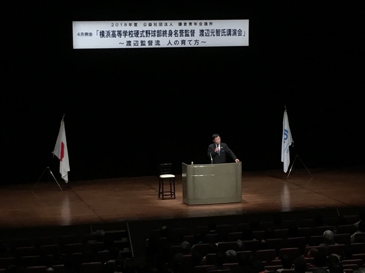 平成30年4月17日(火)に鎌倉芸術館小ホールにて、4月例会として横浜高等学校硬式野球部終身名誉監督の渡辺元智氏に「渡辺監督流〜人の育て方〜」と題してご講演をして頂きました。