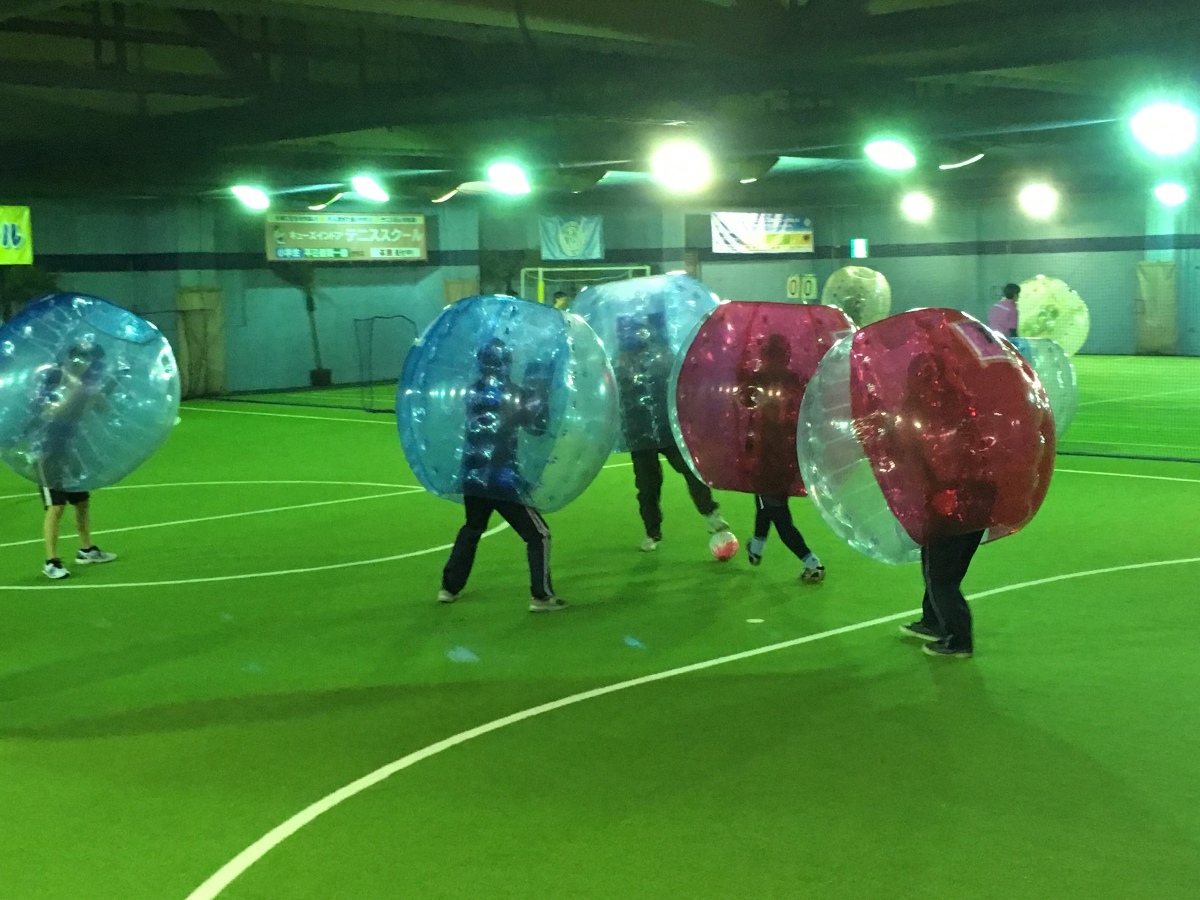第一部は鎌倉市深沢にある湘南インドア球’s倶楽部でバブルフットサルやバブル相撲などを行い、普段とは異なる地域の仲間達と交流しました。