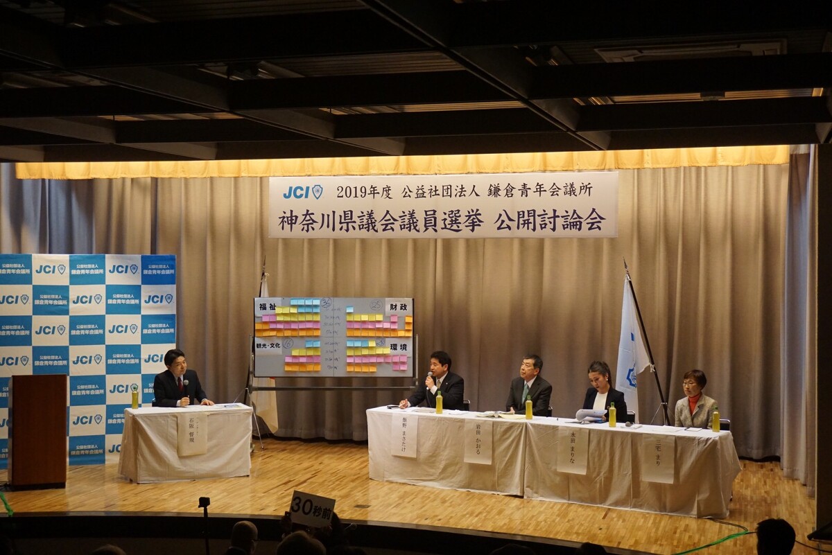 2019年4月7日の統一地方選挙に先立ちまして、神奈川県議会議員選挙における公開討論会が鎌倉商工会議所地下ホールにて開催されました。