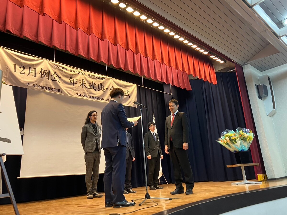 続く年末式典・卒業式では一年間の活動をまとめた動画を見た後に理事長から年間総括をいただき、今年度活動の振り返りを皆で行いました。続けて年間の褒賞および卒業証書授与が行われ、本年度の活動を締めくくりました。